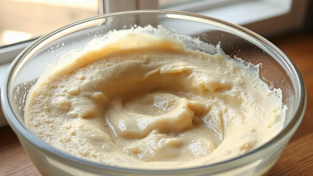 Those bubbles signaling the wild yeast is alive and kicking. Don’t rush this fermentation—it’s the heart of your cake’s flavor and rise.